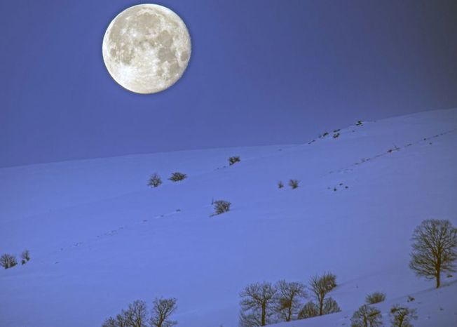 Bitlis'te karla kaplı dağların arkasından yükselen dolunay, oluşturduğu manzarayla gökyüzü meraklılarını mest etti.