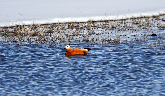 Karların erimesiyle oluşan sulak alanlar, göçmen kuşlarla doldu.