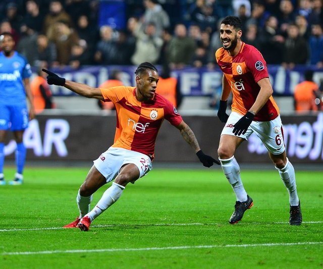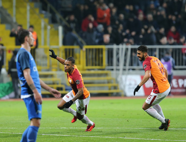 37. dakikada Galatasaray öne geçti. Yarı sahasında buluştuğu topla rakiplerinden sıyrılan Donk, topu sol tarafta müsait durumda bulunan Rodrigues'e çıkardı. Bu oyuncunun Veysel Sarı'dan sıyrıldıktan sonra yaptığı vuruşta meşin yuvarlak ağlarla buluştu: 0-1.