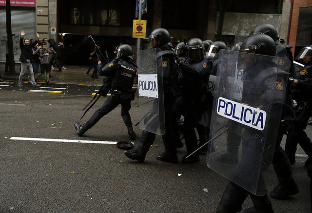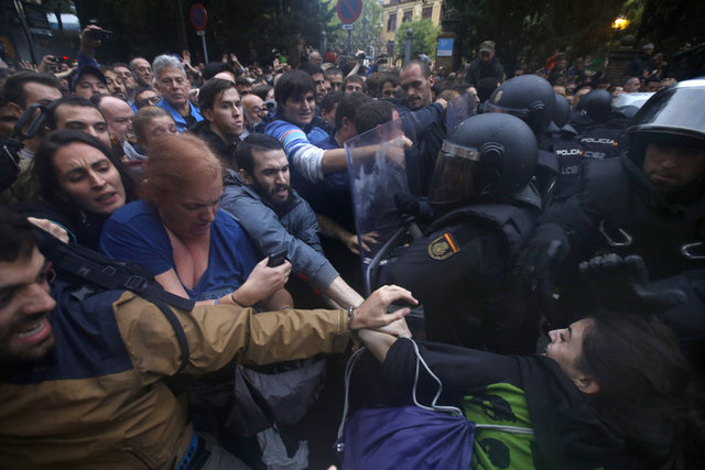 10.50 - İspanya polisi, Katalonya referandumunda oy vermeye çalışanhalka müdahale ediyor. Çok sayıda yaralı var.