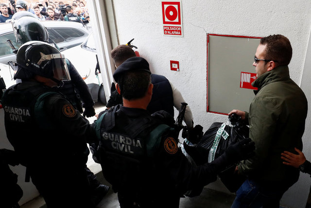 #ozelharf#10.00# - İspanya İçişleri Bakanlığı, ulusal polisin bazı seçim sandıklarını ve oy pusulalarını ele geçirmeye başladığını açıkladı.
