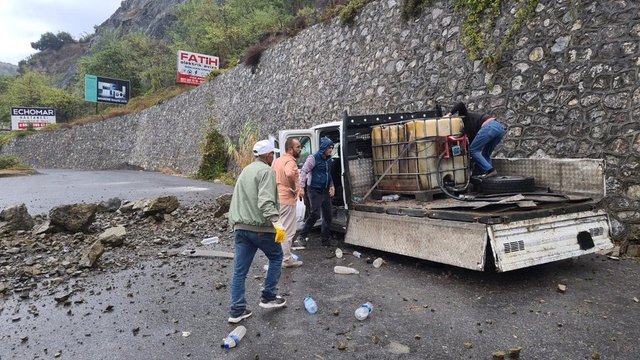 Yara almadan kurtulan Koçdemir, gazetecilere, yakıt verdiği kamyon gittikten sonra gürültü duyduğunu belirterek, "Bir kütürtü geldi, arabayı geri aldım. Baktım yukarıdan kayalar düştü. Geri almasam kabine düşecekti." dedi.