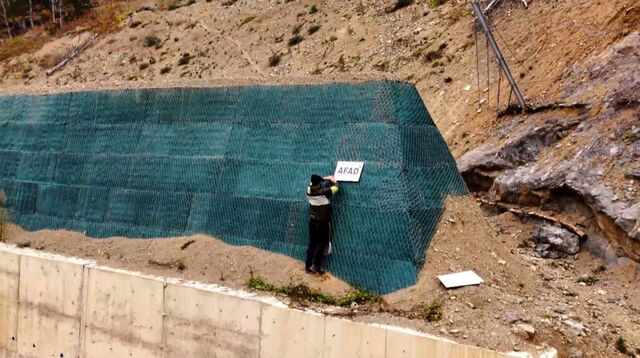 Harekete geçen ekipler tarafından, mahallede yaklaşık 80 konutun güvenliği için toplamda 80 bin metrekarelik yamaca sıkıştırılmış topraktan oluşan, erozyon ve kaya düşmelerine karşı dayanıklı olup, taşların sıçrama etkisini azaltarak konutları koruma altına alan "gabion duvar" sistemi uygulandı.