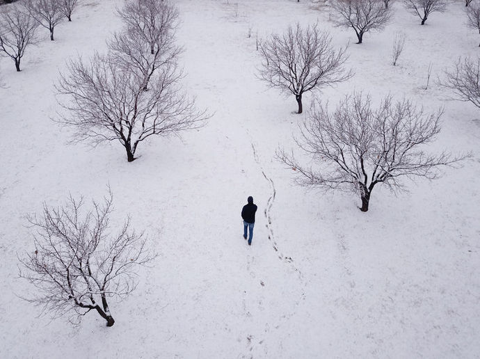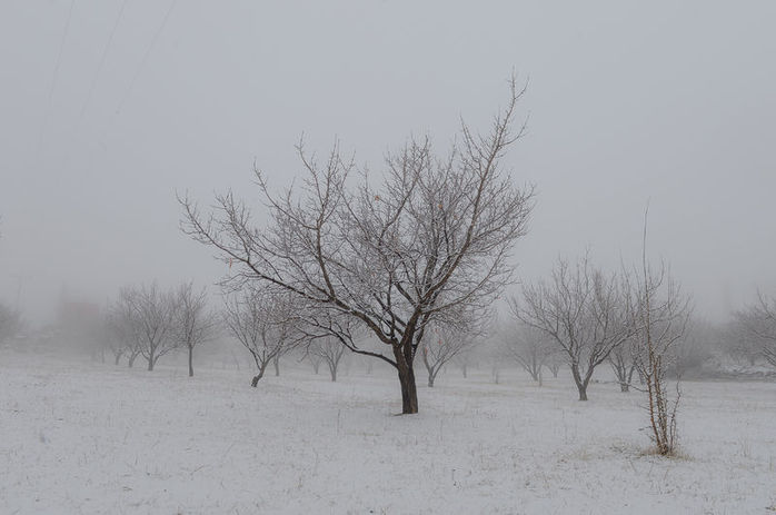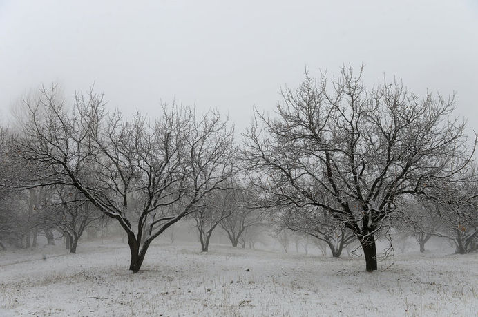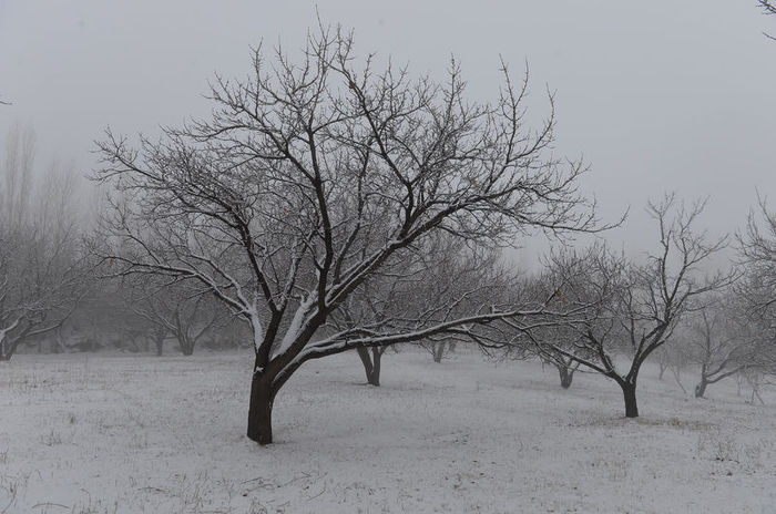 Kayısı üretiminde ilk sıralarda yer alan Iğdır'da, her mevsim ayrı bir güzellik sunan kayısı bahçeleri, kar yağışının ardından güzel görüntüler oluşturdu