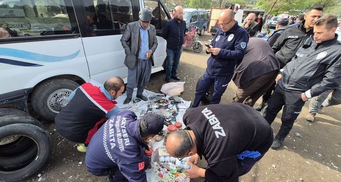 Kayseri'de bitpazarında yapılan denetimlerde, tüketime uygun olmayan ve son kullanım tarihi geçmiş gıdalara el konularak imha edildi