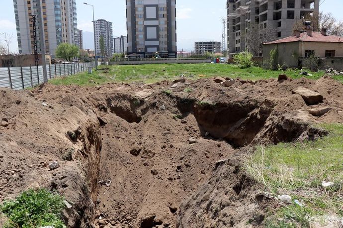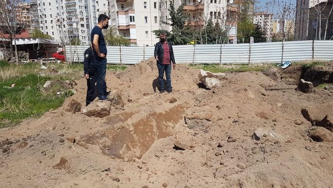 Kayseri'nin Melikgazi ilçesinde, temel kazısı yapıldığı sırada lahit ve gözyaşı şişesi bulunan inşaatın çalışması durduruldu.