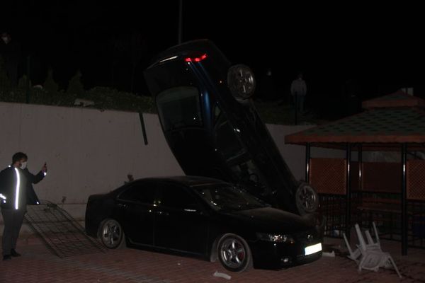 Kayseri'de otoparka düşen otomobilin görüntüsü şaşırttı