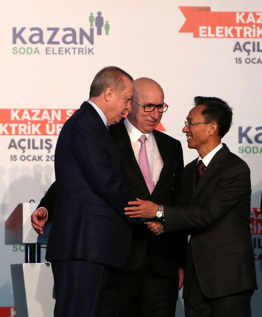 Sayın Cumhurbaşkanım, Kazan Soda yatırımında Türkiye'den finansman kullanılmamıştır. Bütün finansman yurtdışından kullanılmıştır. Finansmanı sağlayan, Çin Halk Cumhuriyeti'nin ihracat sigorta kuruluşu Sinosure'a gösterdikleri güven için teşekkür ediyorum. 1 milyar doların üzerinde dünyada sadece 3 kuruluşa kredi açmıştır, bunlardan biri de Kazan Soda'dır. Finansmanı yapan bankalar ICBC, China Import Export Bank ve Deutsche Bank'a ayrıca teşekkür ediyorum.