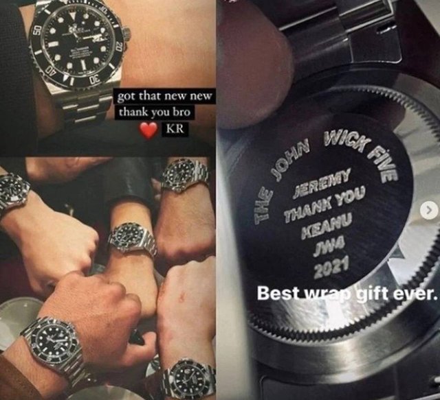 'John Wick 4' çekimlerini tamamlayan ünlü aktör Keanu Reeves, ekip arkadaşlarına saat hediye etti. Saatin tanesinin ise 9 bin dolar (yaklaşık 86 bin TL) olduğu öğrenildi