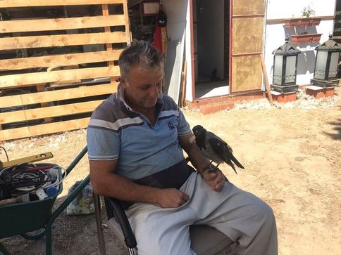 İstanbul Sarıyer’de bir süre esnaflık yaptıktan sonra emekli olan Tanju Demircan, Çan İlçesine bağlı Göle köyündeki bağ evine gitmek için Sarıyer’den aracıyla yola çıkmak üzereyken aracının yanında yavru bir karga ve kedinin olduğunu fark etti.