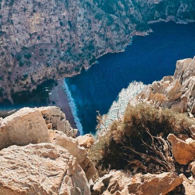Fethiye'nin Faralya Mahallesi'nde Kelebekler Vadisi'ni gören kayalıklar da üzerinde fotoğraf çektirmek isteyen tatilcilerin akınına uğradı.