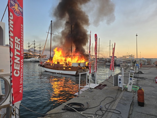 Kemer Marina'daki Süleyman Aydoğmuş'a ait "Hilal Ay" adlı gezi teknesinde henüz belirlenemeyen nedenle yangın çıktı. İhbar üzerine bölgeye itfaiye ekibi yönlendirildi.