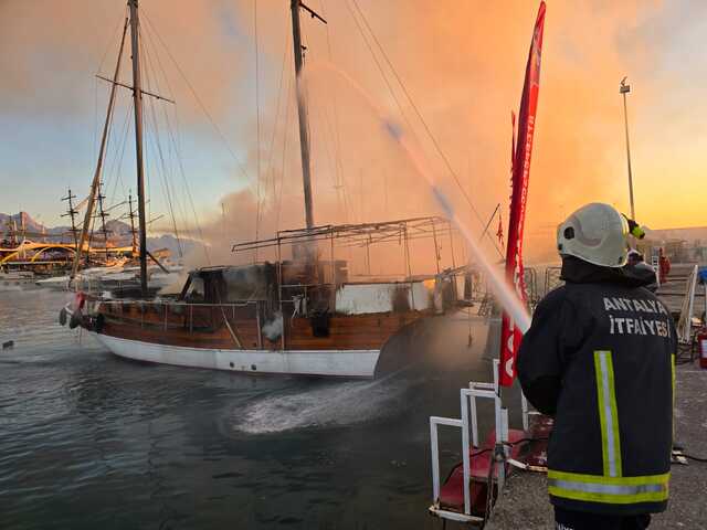 Antalya'nın Kemer ilçesinde "Hilal Ay" adlı gezi teknesinde yangın çıktı. Ekibin müdahalesiyle söndürülen yangında tekne kullanılamaz hale geldi.