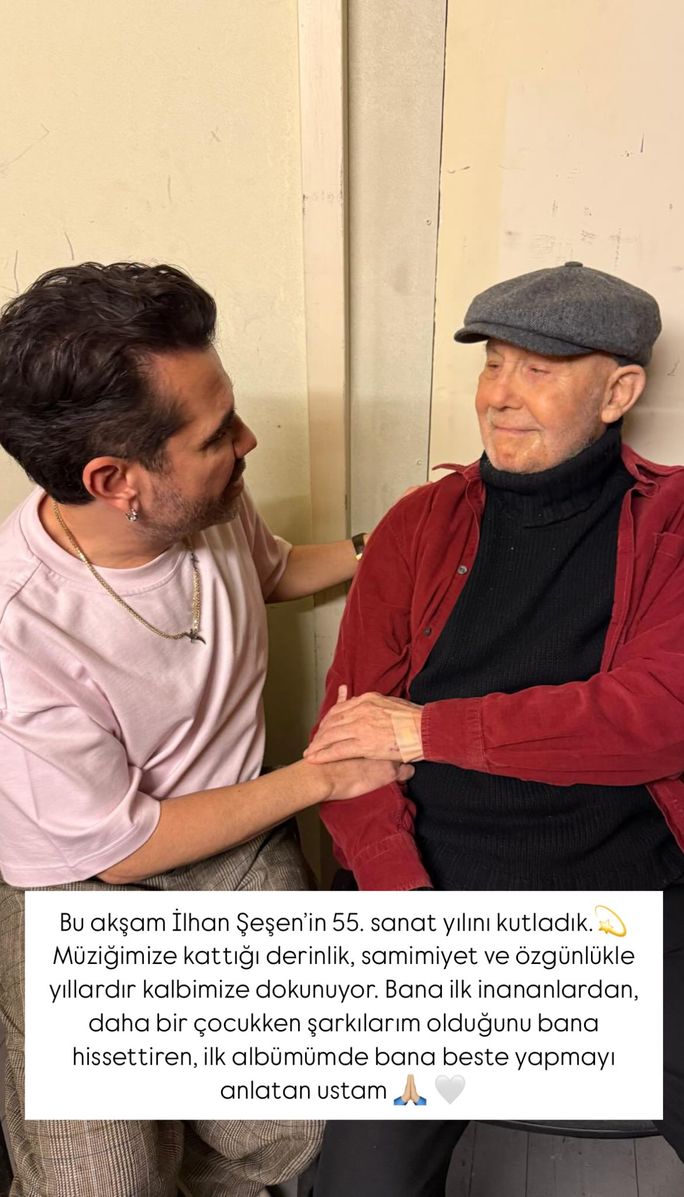 Sosyal medya hesabından duygularını dile getiren Kenan Doğulu, şunları söyledi: Bu akşam İlhan Şeşen'in 55'inci sanat yılını kutladık. Müziğimize kattığı derinlik, samimiyet ve özgünlükle yıllardır kalbimize dokunuyor. Bana ilk inananlardan, daha bir çocukken şarkılarım olduğunu hissettiren, ilk albümümde bana beste yapmayı anlatan ustam.