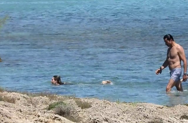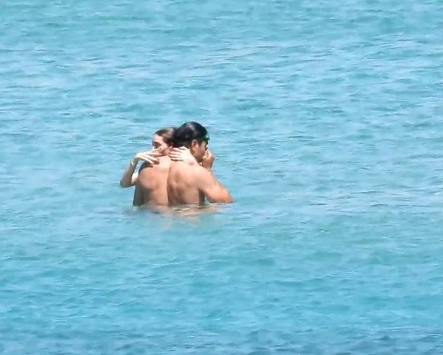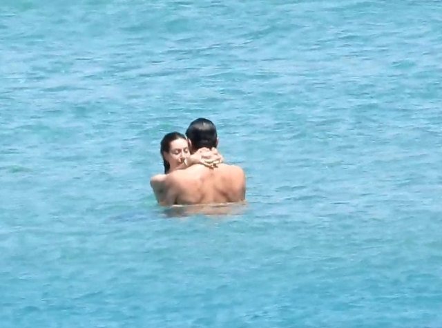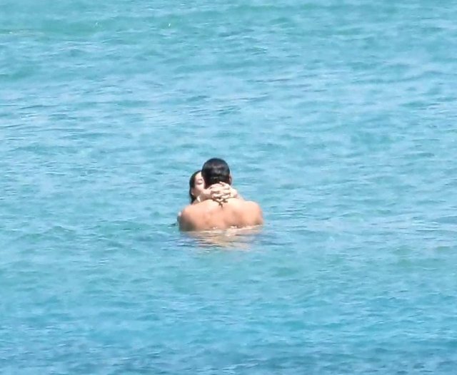 Yüzerken bir süre sohbet eden Kenan İmirzalıoğlu ile Sinem Kobal, daha sonra birbirlerine sarılarak derin aşklarını bir kez daha gözler önüne serdi.