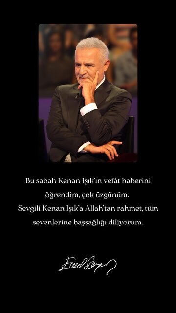 Metin Şentürk: Usta oyuncu Kenan Işık'ı kaybetmenin derin üzüntüsünü yaşıyorum. Kendisine Allah'tan rahmet ailesine ve sevenlerine başsağlığı diliyorum.