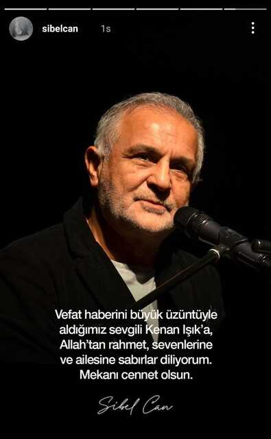 Sibel Can: Vefat haberini büyük üzüntüyle aldığımız sevgili Kenan ışık'a, Allah'tan, rahmet sevenlerine ve ailesine sabırlar diliyorum. Mekânı cennet olsun.
