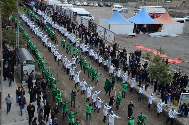 Hazreti Ali Çarşı Camisi önünde bir araya gelen, ellerinde Türk bayrağı ile Atatürk ve Hazreti Ali'nin posterlerini taşıyan yaklaşık 15 bin kişilik grup, anma programı kapsamında buradan yürüyüşe başladı.