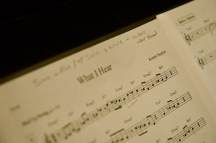 What I Hear, akademik bir çalışmanın zamanla kişisel bir besteye dönüşmesinin güzel bir örneği. Berklee'de Greg Hopkins'in verdiği Post Bebop Harmonic Innovations dersinde, "tonic systems" konusunu işlerken bu sistemleri kullanarak bir jazz standardını reharmonize etmemiz istenmişti. Uzun süredir John Coltrane'i dinleyen ve onun armonik yaklaşımını anlamaya çalışan bir müzisyen olarak, bu ödevde I Hear a Rhapsody parçasını Coltrane armonileriyle yeniden ele almayı seçtim. Ortaya çıkan yapı beni çok heyecanlandırdı ve bunun yalnızca bir ödev olarak kalmasını istemedim. Bu armonik zemin üzerine kendi melodimi yazdım ve parça zamanla bağımsız bir kimlik kazandı. İsmi de buradan geliyor: Hem duyduğum armonik dünya hem de benim müzikal olarak "duyduğum" cümleler.