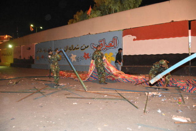 Ordunun kullandığı binanın KDP'ye verilmesi gerektiğini savunan göstericilerin, karargah önünde Arap ve Türkmenlerce sürdürülen eylem alanına yaklaşması ve olayların büyümesi üzerine, kentte sokağa çıkma yasağı uygulanmıştı.