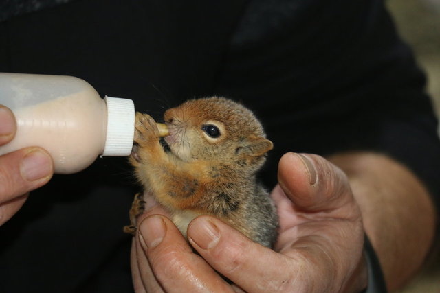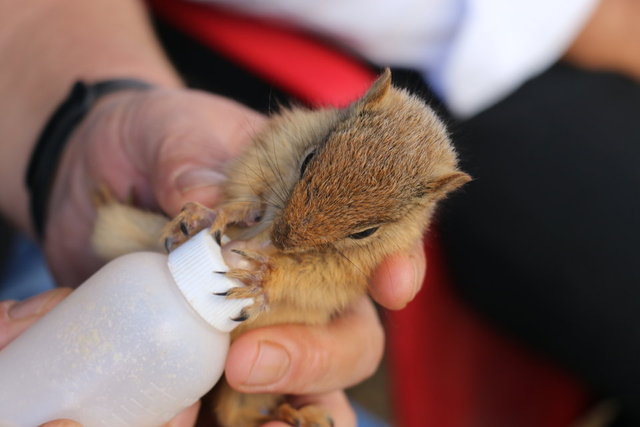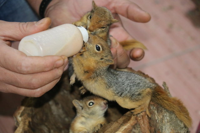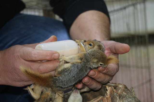 Çoban, bitkin haldeki 4 sincap yavrusunu biberonla beslemeye başladı.