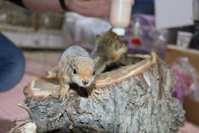 Kesilen ağacın kovuğunda bulduğu 4 sincap yavrusunu biberonla besliyor