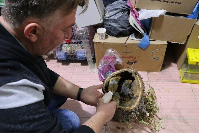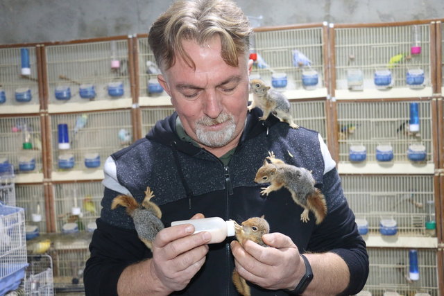 Kovukta 4 sincap yavrusu gören Acar, onları, daha önce de hayvanların bakımını üstlenen ve ilçede Kuşçu Mahmut olarak bilinen Mahmut Çoban'a götürdü.