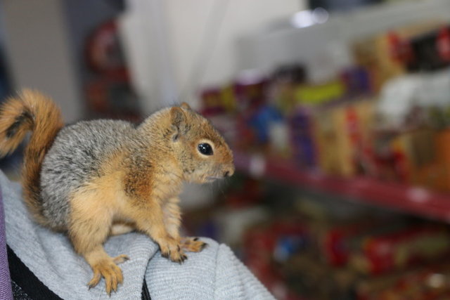 Market sahibi Necmettin Kızıl, sincapların bazen iş yerine geldiğini, onlara beslenmeleri için gıda verdiğini ve minik hayvanlara çok alıştığını belirtti.