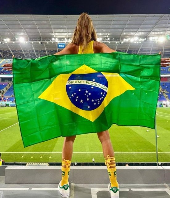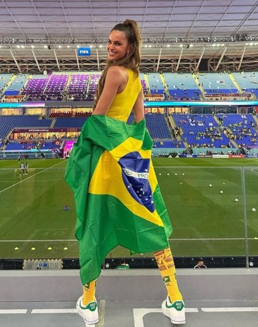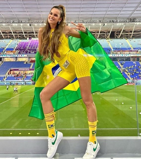 Almanya milli takımının kalecisi Kevin Trapp'in nişanlısı Izabel Goulart, Brezilya tribününde boy gösterdi. Almanya'nın elenmesinin ardından Brezilya'yı desteklemeye devam eden Goulart'ın kombini tüm taraftarların dikkatini çekti.