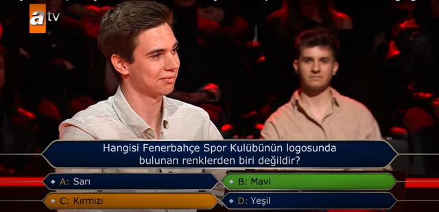 Kim Milyoner Olmak İster'de Fenerbahçe sorusu: Tuttuğu takımın logo renklerini bilemedi!