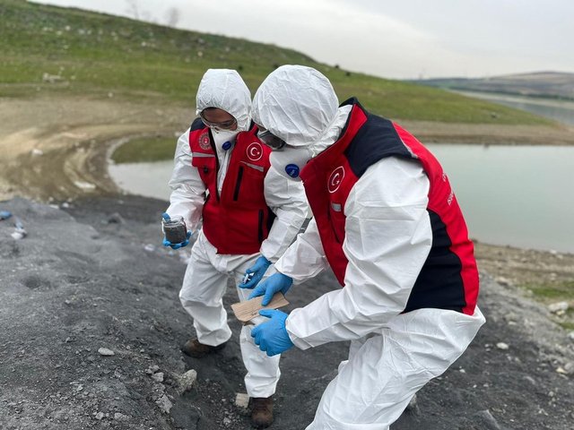 Ekiplerce alanda inceleme yapıldığını ve numuneler alındığını belirten Akgün, "Yapılan ilk inceleme neticesinde söz konusu alana dökülen atıkların, ısıl işlemden kaynaklanan dip külü, cüruf ve kazan tozu atıkları olduğu değerlendirilmiş ve atığın muhteviyatının tayin edilmesi amacıyla gerekli numuneler alınmıştır." bilgisini paylaştı.