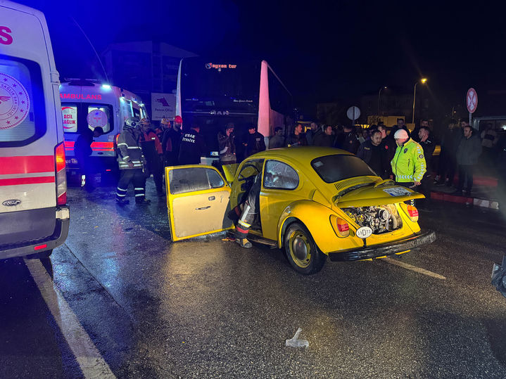 Gazi Bulvarında ilerleyen M.A. (36) yönetimindeki 34 CVG 008 plakalı otomobil, aynı bulvardan Günsazak Caddesi'ne dönüş yapmak isteyen A.Ç. (27) idaresindeki 34 VTT 39 plakalı otobüse arkadan çarptı.