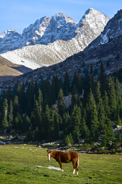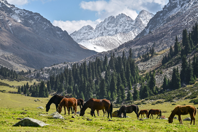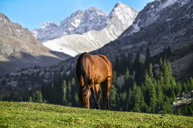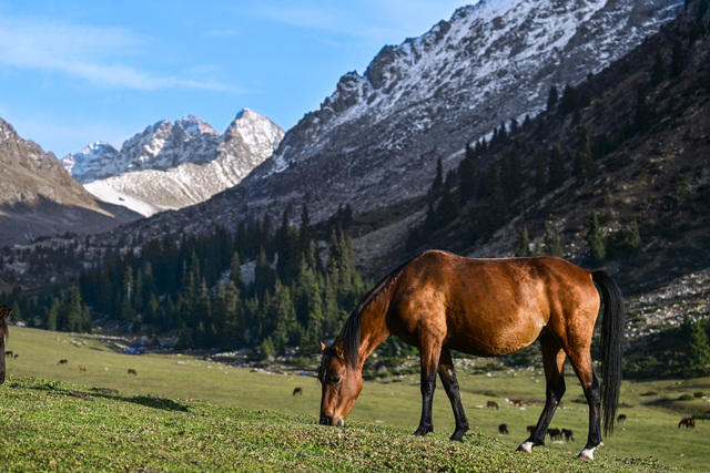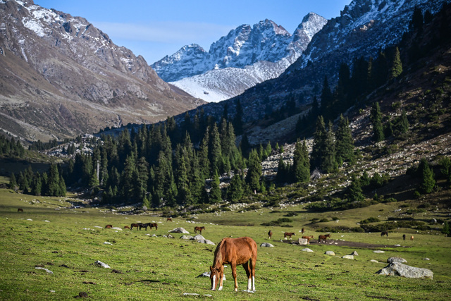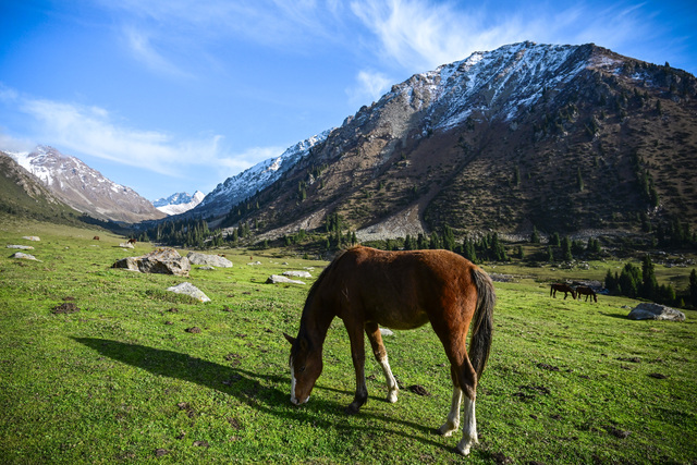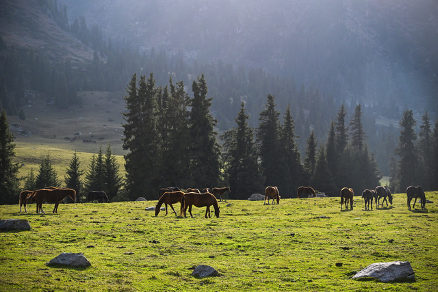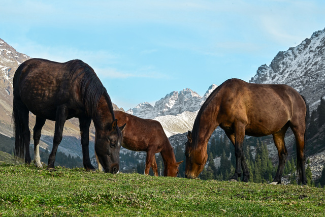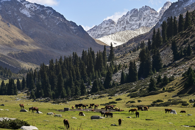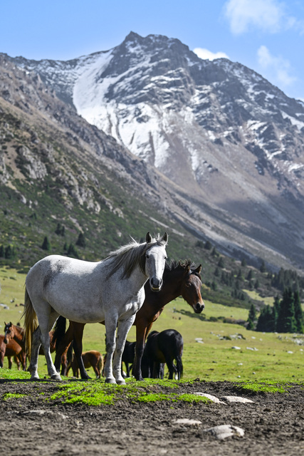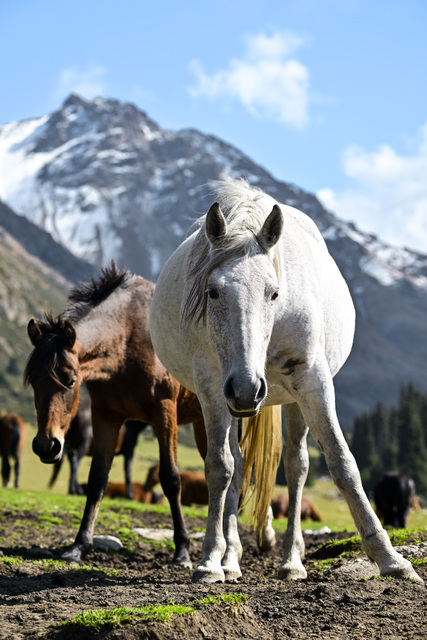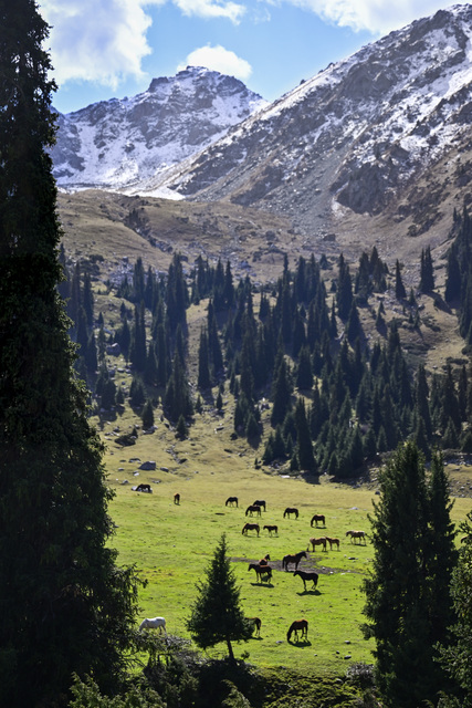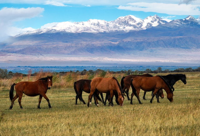 Tanrı Dağları'ndaki yaylalar ve 'Tanrı Dağları'nın efendileri' olarak gösterilen yılkı atları ise Kırgız halkının vazgeçilmezleri arasında yer alıyor.