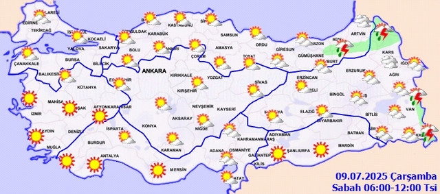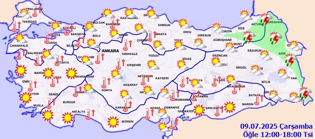Sıcak hava dalgası etkisini sürdürürken, Meteoroloji’den yeni uyarılar peş peşe geldi. 9 Temmuz Çarşamba günü Doğu Karadeniz ve Doğu Anadolu’nun bazı illerinde kuvvetli sağanak ve gök gürültülü yağış bekleniyor. İstanbul ve çevresinde ise sıcaklıkların yüksek seyrini sürdürmesi beklenirken uzmanlar, ani hava değişimlerine karşı vatandaşları tedbirli olmaya çağırdı. İşte 9 Temmuz Çarşamba hava durumu raporu...