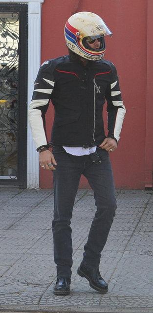 Havaların ısınmasıyla birlikte motosiklet kullanmayı tercih eden 37 yaşındaki oyuncu, gazetecileri selamladıktan sonra evinin yolunun tuttu.