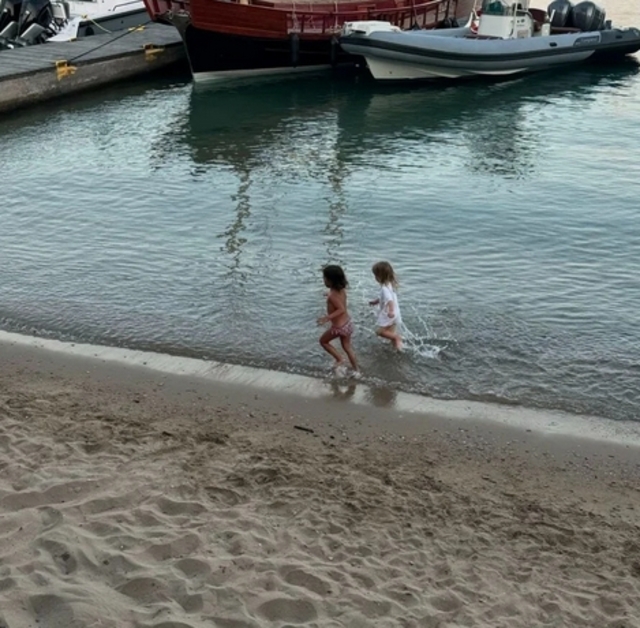 Başak Dizer, oğlu Kurt Efe ve Özge Özpirinçci ile Burak Yamantürk'ün kızları Mercan'ın koşup oynadığı anları da yayımladı.