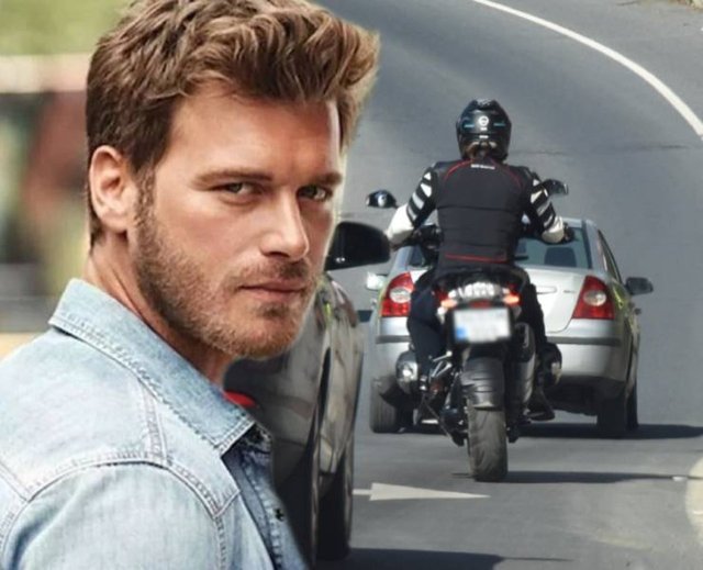 Motosikletini yan kapıya getirten ünlü oyuncu, otomobilini de ön tarafta bekletti. Aracına binecek süsü verip motosikletine atlayan Tatlıtuğ, muhabirlerden kaçmak için köprü trafiğine girdi.