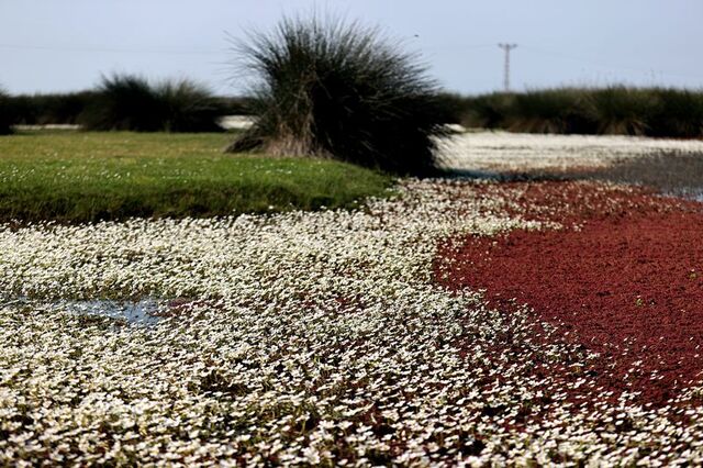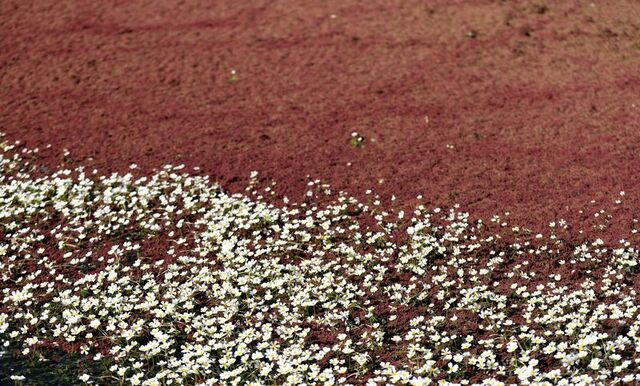 Kızıl rengin hakim olduğu sulak alanlarda beyaz su papatyalarının da açmasıyla güzel görüntüler ortaya çıktı.