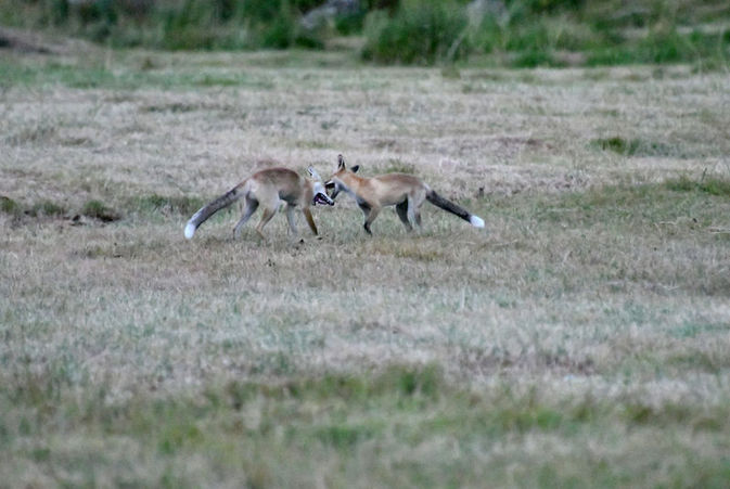 İlçeye 5 kilometre uzaklıkta bulunan Acısu bölgesindeki otları biçilmiş çayırlık alanda kızıl tilki yavrularının ilginç oyun oynamaları görüntülendi.