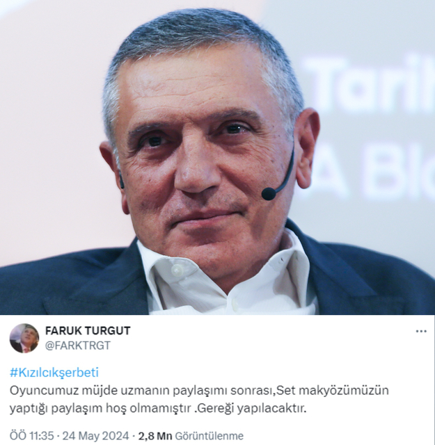 Dizinin yapımcısı Faruk Turgut ise gelen tepkiler üzerine; "Oyuncumuz Müjde Uzman'ın paylaşımı sonrası set makyözümüzün yaptığı paylaşım hoş olmamıştır. Gereği yapılacaktır" açıklamasını yaptı.
