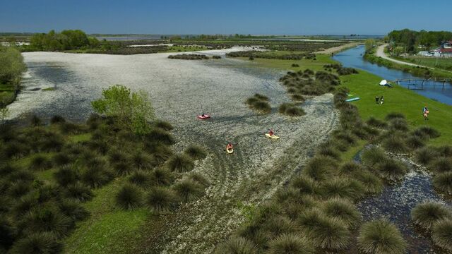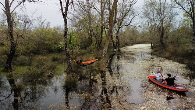 UNESCO Doğal Miras Geçici Listesi'nde yer alan kuş cennetinde, ziyaretçiler su düğün çiçekleri arasında kano yapıyor.