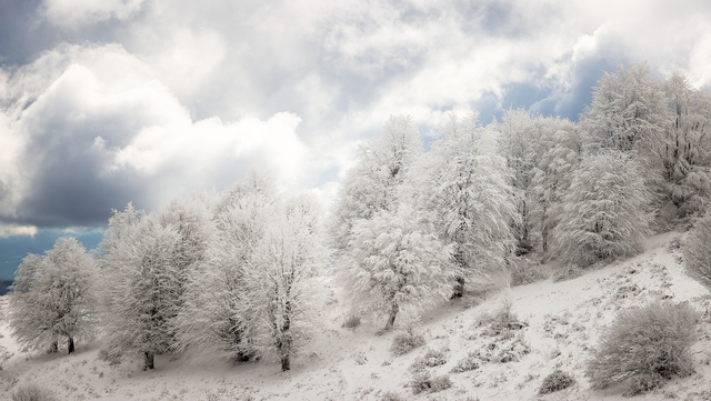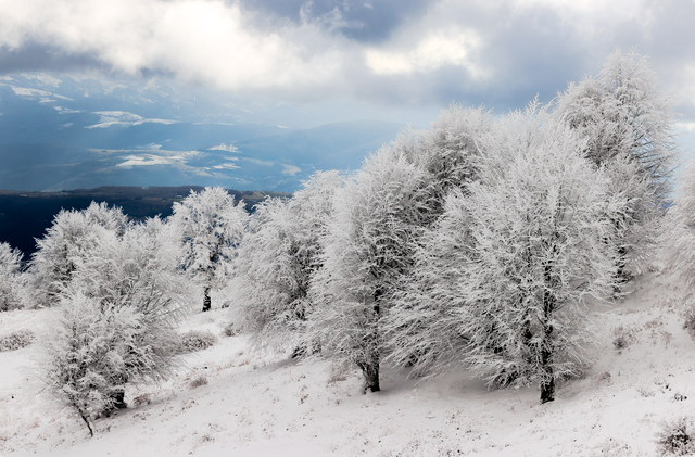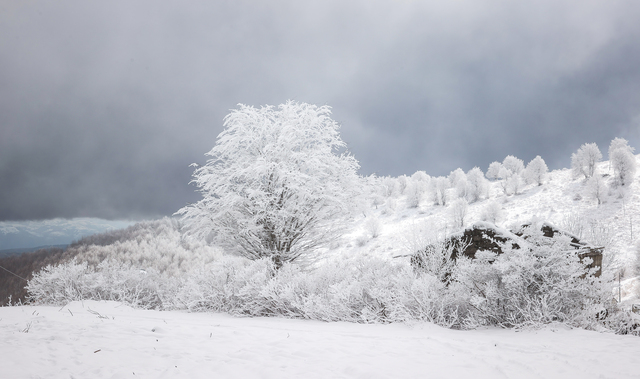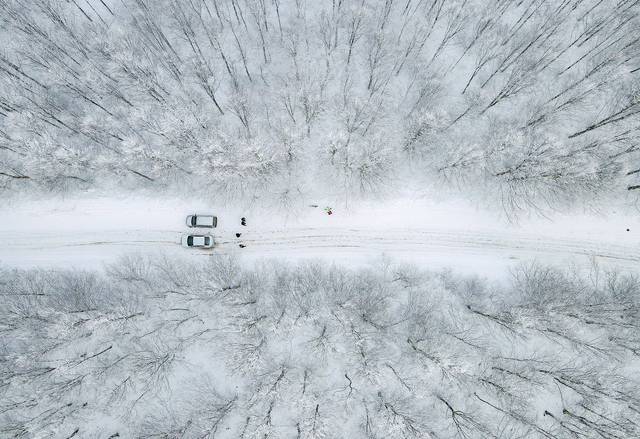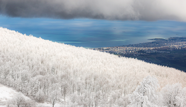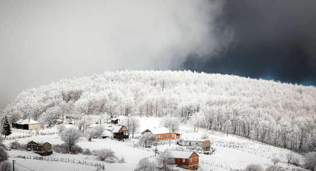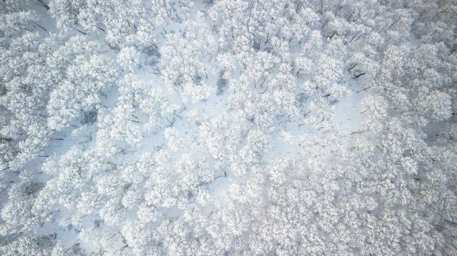 Kocadağ Yaylası ve çevresindeki ağaçlarla oluşan kış manzarası, drone ile görüntülendi.
