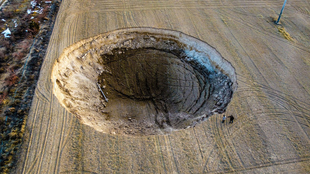Konya'nın Karapınar ilçesinde, 37 metre çapında ve 12 metre derinliğinde obruk oluştu.