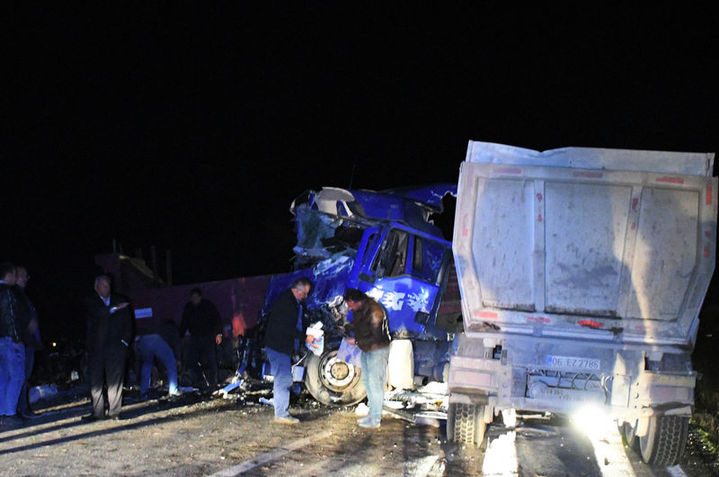 Kaza, saat 19.00 sıralarında Kulu- Karadağ Mahallesi yolunun 12'nci kilometresinde meydana geldi. Mustafa Gürdal yönetimindeki 42 BZ 199 plakalı TIR, virajda karşı yönden gelen İsmail Topkır idaresinde 42 SE 048 plakalı kamyonla çarpıştı.