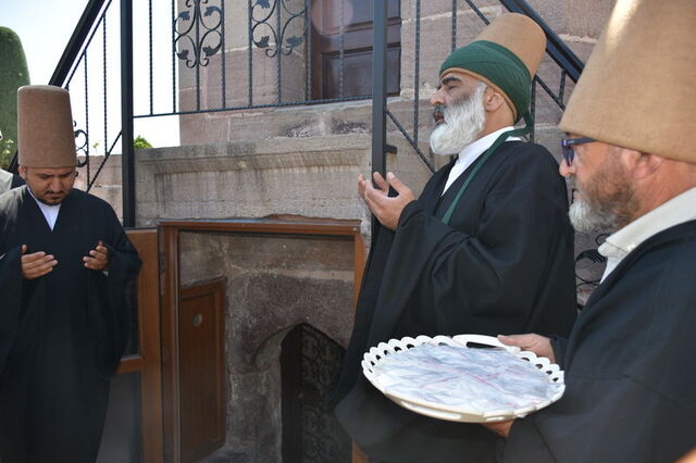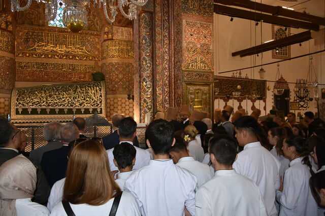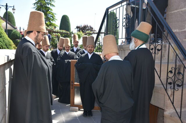 Konya Vali Yardımcısı Mustafa Gündoğan, İl Kültür ve Turizm Müdürü Fikret Fidan, Selçuk Üniversitesi Turizm Fakültesi Gastronomi ve Mutfak Sanatları Bölümü öğrencileri ile Meram Atatürk Kız Meslek Lisesi Yiyecek ve İçecek Hizmetleri Alanı öğrencileri, Mevlana Müzesi'nde Gülbank duasına katıldı.
