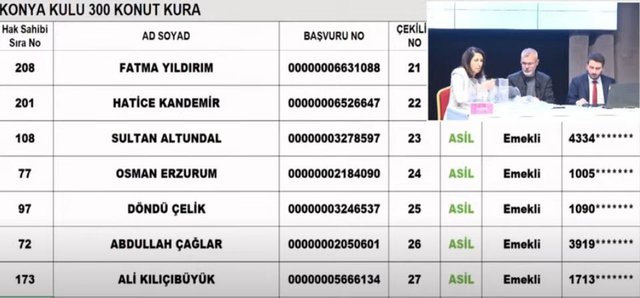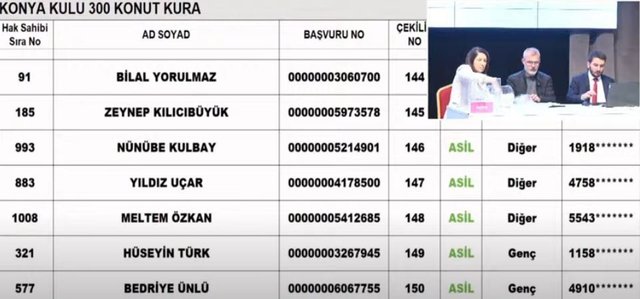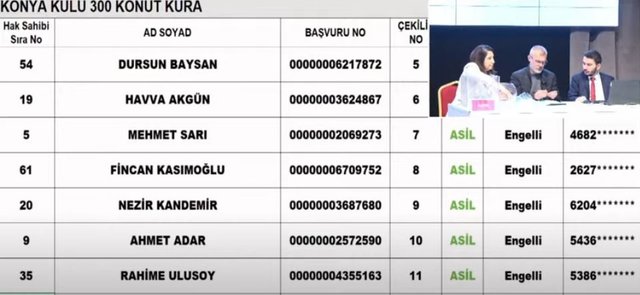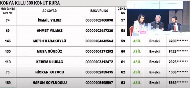 Konya kura çekilişinde ismi çıkan bazı vatandaşlar şu şekilde;