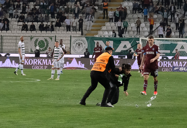 Trendyol Süper Lig'in 31. haftasında Konyaspor ile Trabzonspor arasında oynanan maçta sahaya taraftar girdi.