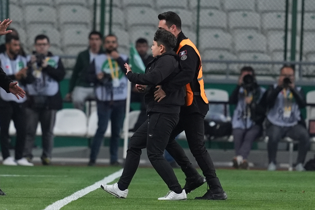 Maçın 58. dakikasında ise oyunun durduğu bölümde tribünlerden sahaya bir taraftar atladı.