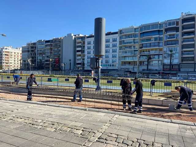 Bu kapsamda, Alsancak Limanı'ndan itibaren sahil şeridine beton bariyerler kurulurken, İzmir Büyükşehir Belediyesi Fen İşleri Dairesi Başkanlığı ile Park ve Bahçeler Dairesi Başkanlığı çalışmaları hızlandırdı.
