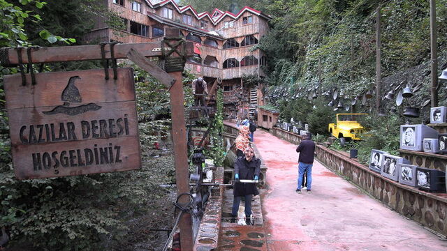 Yomra ilçesinin Özdil Mahallesi'nde 33 yıl önce dere kıyısına kurulan Cazılar Deresi Alabalık Tesisi, son zamanlarda korku temalı dekorları ve işletmede sergilenen antika eşyalarla dikkati çekiyor. Özellikle Körfez ülkelerinden tatile gelen Arap turistlerin uğrak yeri olan tesis, her bir köşesine konulan ürpertici cadı figürleri ve plastik heykellerle, ziyaretçilerine korku filmi atmosferi yaşatıyor.